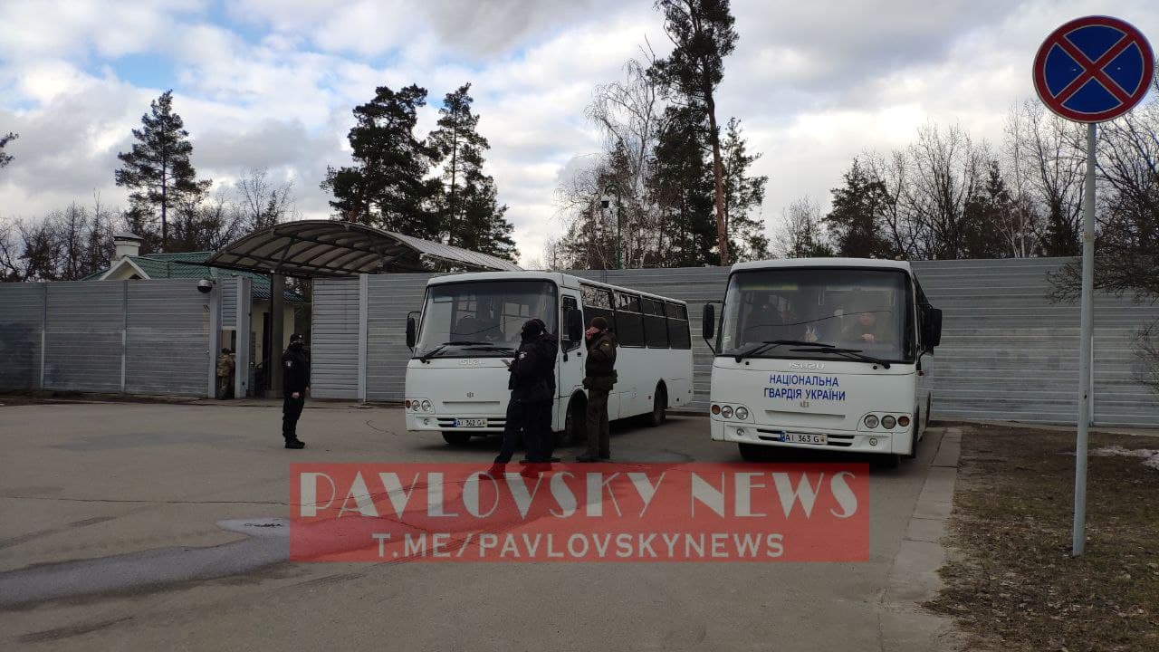 "Под Конча-Заспу стягиваются зеленые автобусы Нацгвардии, а у въезда в резиденцию, где проживает президент Владимир Зеленский, дежурят белые автобусы правоохранителей", - сказано в подписи к опубликованным кадрам.