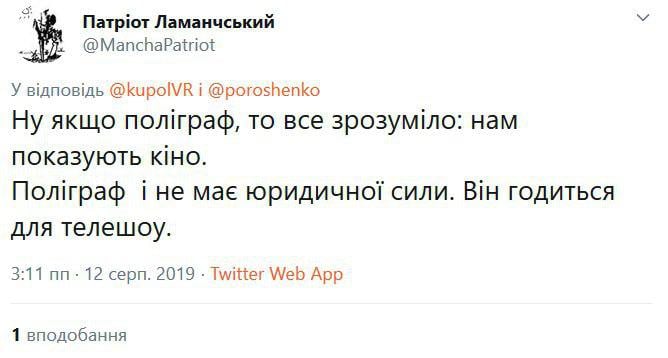 Пользователи соцсетей выразили скепсис по поводу идеи с полиграфом, отметив, что такой опрос не будет иметь юридической силы, и сравнили происходящее с дебатами на стадионе тогда еще кандидатов в президенты Петра Порошенко и Владимира Зеленского в ходе президентской кампании.