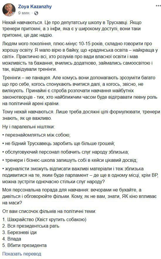 Согласно информации журналистов, обучение стартовало в понедельник, 29 июля утром. Читают лекции будущим депутатам преподаватели бизнес-тренеры Киевской школы экономики и "признанные на рынке труда специалисты".