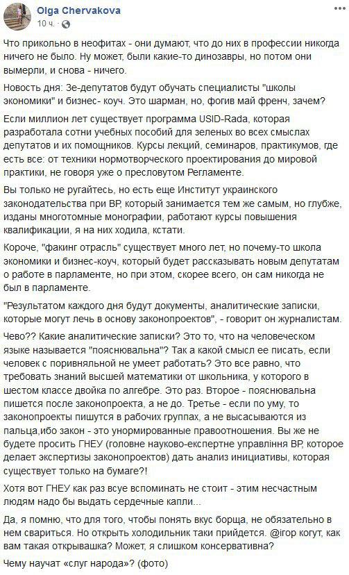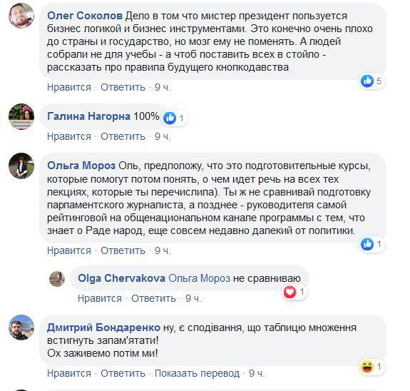 В то же время пользователи соцсетей раскритиковали съезд, отметив, что при парламенте есть бюджетные обучающие структуры для будущих депутатов, а тренеры частной школы не могут обладать достаточным опытом для такого рода тренингов. Также было отмечено, что кроме объявленной программы будут еще и определенные кулуарные договоренности для улучшения взаимодействия депутатов Рады и команды президента Зеленского.