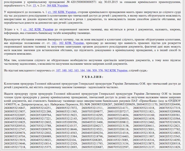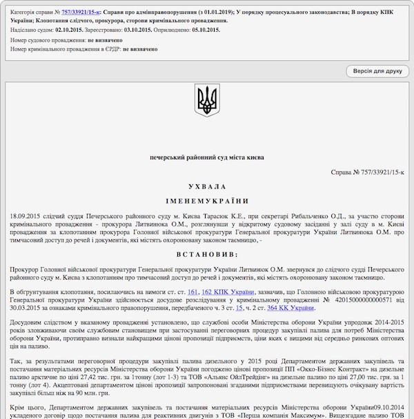 "Мы уже писали о том, что Юрий Гусев сейчас рассматривается как претендент на должность министра обороны... В 2016 году он был уволен с должности замминистра после громкого коррупционного скандала... Выяснилось, что, когда Юрий Гусев возглавлял тендерный комитет МО и лично занимался всеми "топливными" контрактами, он, закупая горючее через сеть посредников, "нагрел" государство как минимум на 200 млн грн... Информация была размещена в малозаметном "техническом" решении суда. Прокурор, который вел в 2015 дело о злоупотреблениях в закупках горючего, обратился в суд с ходатайством о временном доступе к вещам и документам, содержащим охраняемую законом тайну. Суд фактически в этом отказал, но в тексте постановления указаны практически все факты, которые нас интересуют", – пишет журналист.