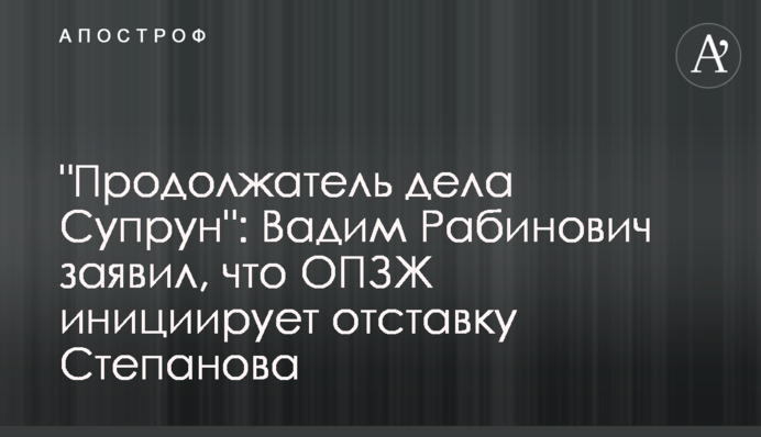 "Мы с однопартийцами объехали девять больниц, чтобы лично посмотреть на состояние дела. Хочу сказать: после увиденного министра Степанова нужно называть "Супрун", поскольку он продолжает уничтожать украинскую медицину", – заявил Вадим Рабинович.