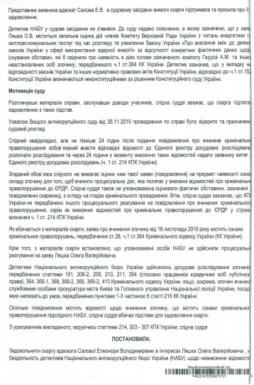 "Обязать уполномоченных лиц НАБУ внести сведения в Единый реестр досудебных расследований, по заявлению Ляшко Олега Валерьевича, зарегистрированного уполномоченными лицами НАБУ 18 ноября", – говорится в постановлении суда от 3 декабря.