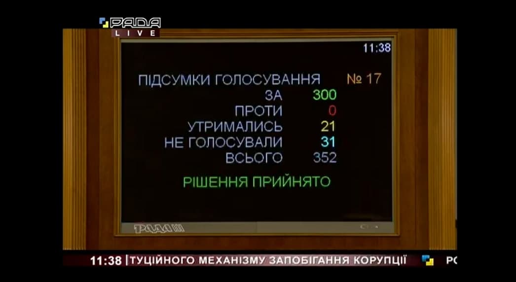 За соответствующий законопроект №4470 проголосовало 300 народных депутатов.