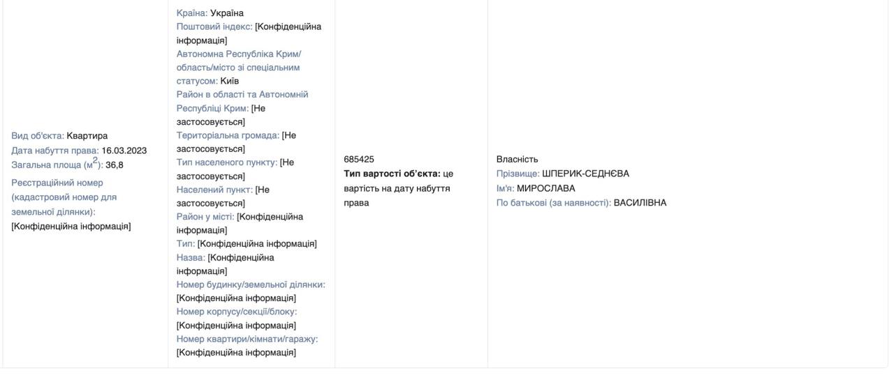 Факты незаконного обогащения семьи Седневых-Шпериков, действующие в условиях потенциального конфликта интересов, подтверждают данные из декларации о доходах супруги Сергея Седнева, работающей заместителем начальника Регионального отделения Фонда государственного имущества Украины по городу Киеву.