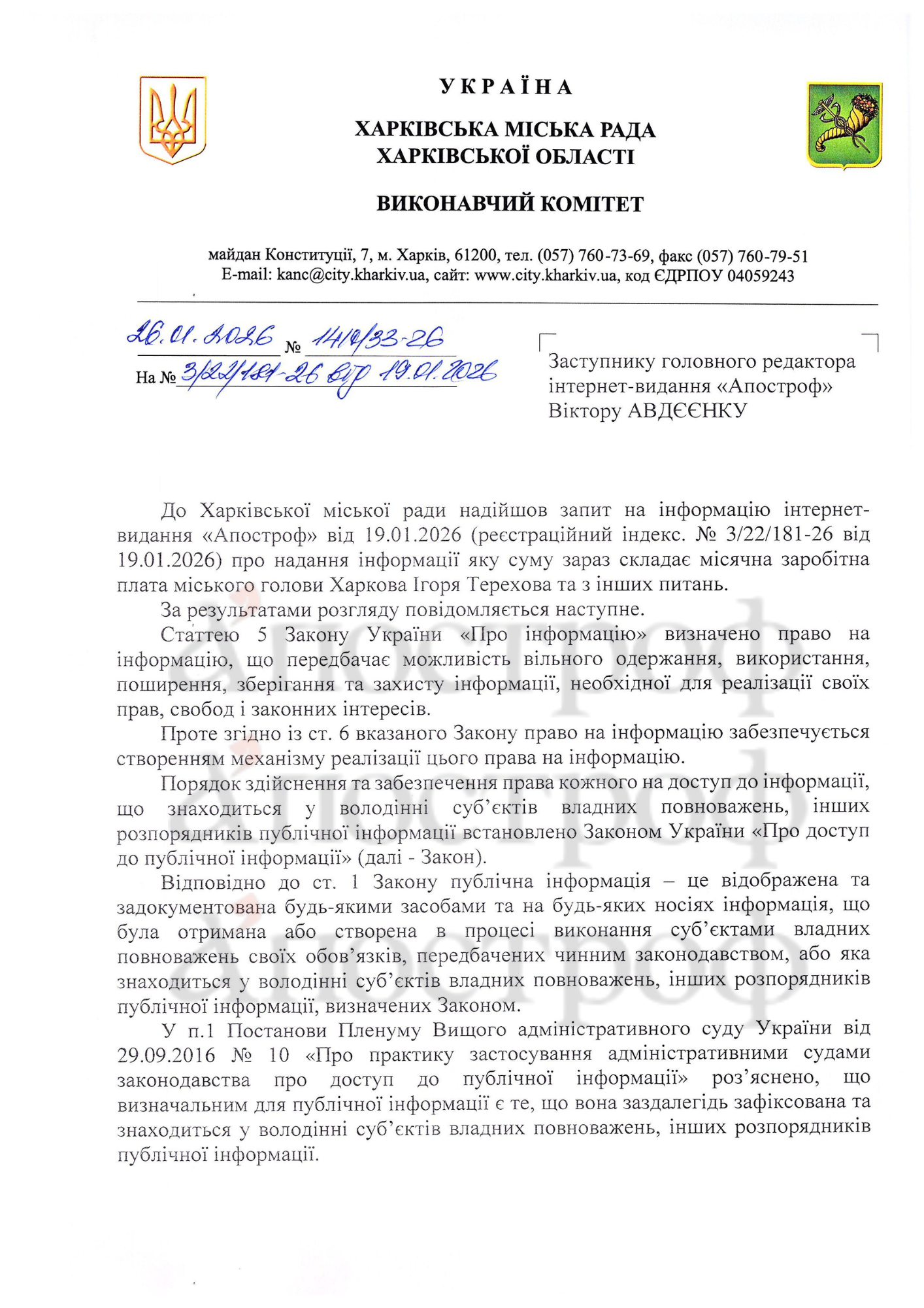 Большинство городских советов ответили на запросы "Апострофа" о размерах зарплат мэров, однако Харьковский горсовет фактически отказался давать такой ответ.