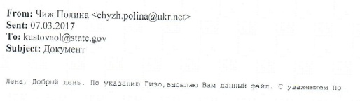 В этих письмах Национальное антикоррупционное бюро просит указаний от посольства иностранного государства - как отвечать на запросы народных депутатов, ответы предварительно согласуются с работниками посольства. То, что это сотрудники посольств, видно по электронному адресу state.gov.