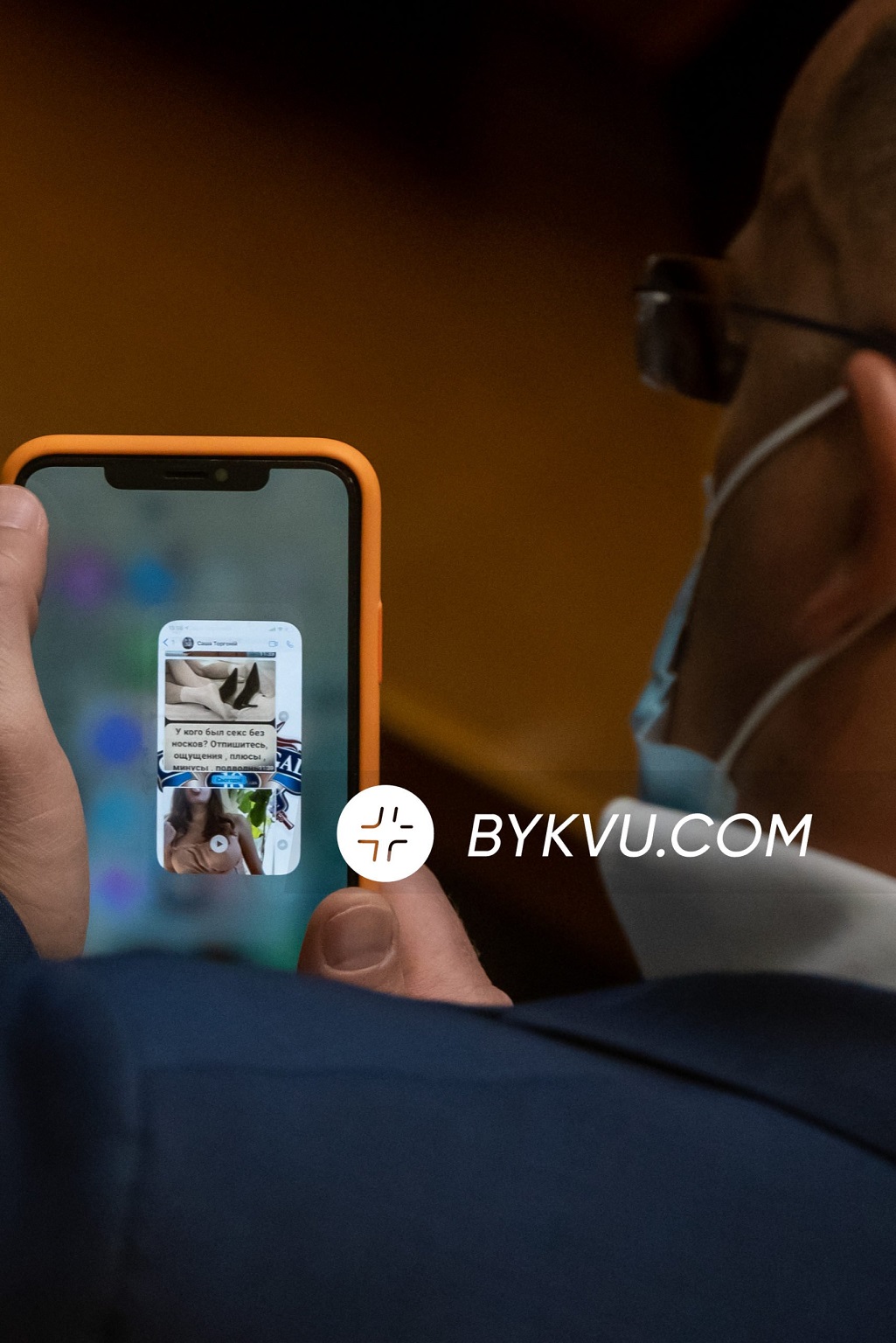 Народный депутат из фракции "Слуги народа" Евгений Петруняк во время заседания Верховной Рады во вторник, 27 апреля, рассматривал на телефоне видео с женщиной, которая демонстрировала обнаженную грудь.