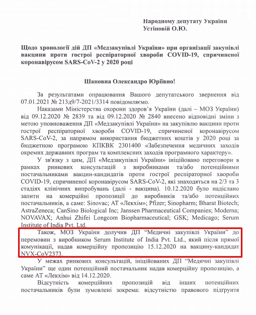 В Минздраве сорвали закупку вакцины от коронавируса производства Serum Institute of India, которую Всемирная организация здравоохранения покупает по цене 3 доллара за вакцину. Зато Минздрав заключил контракт на закупку китайской вакцины Sinovac Biotech, которая стоит в 5 раз дороже.