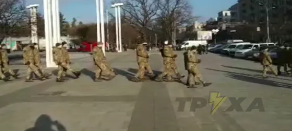22 декабря возле театра оперы и балета, где будет проходить церемония прощания, провели репетицию с участием около 30 курсантов Харьковского национального университета воздушных сил имени Ивана Кожедуба.