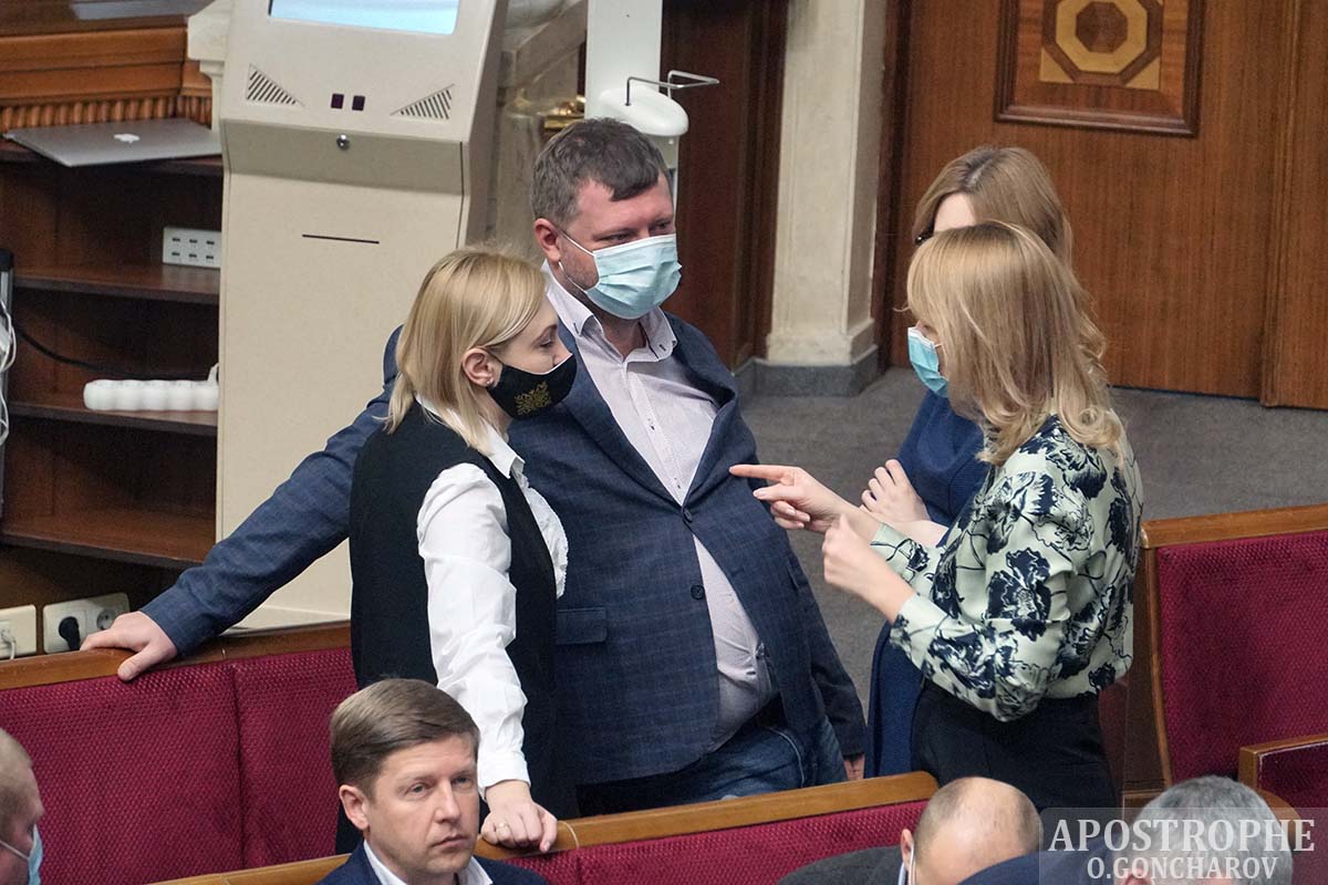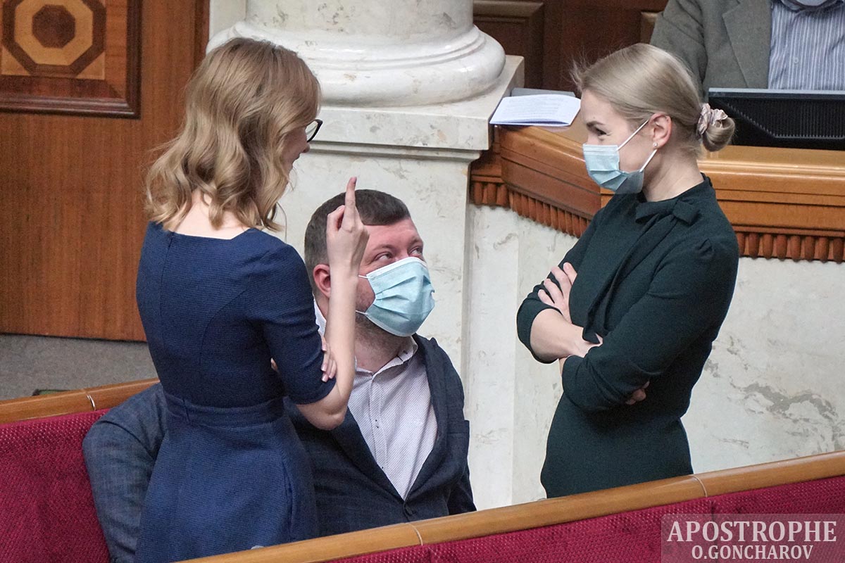 Как видно на фото, Корниенко присоединился к разговору Роксоланы Пидласой со своей коллегой по партии Анастасией Радиной и их разговор вызвал у него интерес. Женщины что-то обсуждали и при этом активно жестикулировали. Впоследствии к компании нардепов присоединились и другие политики.
