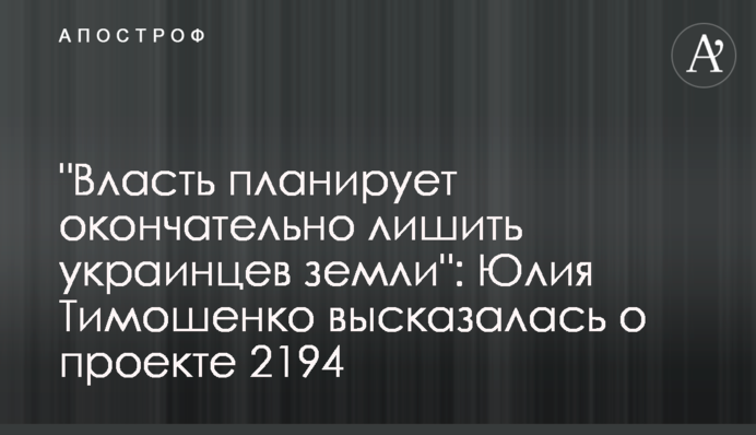 По мнению лидера "Батькивщины", указанный законопроект продолжает стратегию власти по распродаже земли иностранцам и ставит точку на украинском фермерстве.