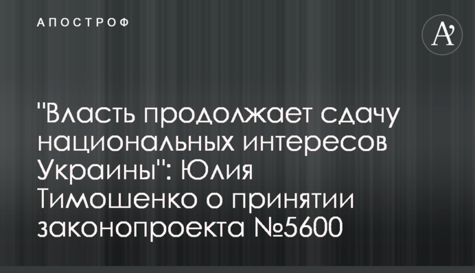 Об этом заявила глава партии "Батькивщина" Юлия Тимошенко во время брифинга после того, как 255 народных депутатов проголосовали за законопроект №5600.