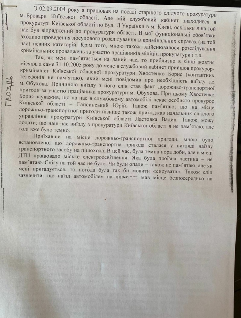 В ходе нового следствия, начатого 20 июня 2018 по заявлению народного депутата Максима Полякова полицией были допрошены свидетели, которые рассказали, что после ДТП следователей встретил лично прокурор Киевской области Юрий Гайсинский, чтобы ехать на осмотр места аварии в Обухов. Гайсинский лично отвозил своего подчиненного Калужинского на освидетельствование. Новое дело было также закрыто по причине прошествии срока давности", - сообщает издание.