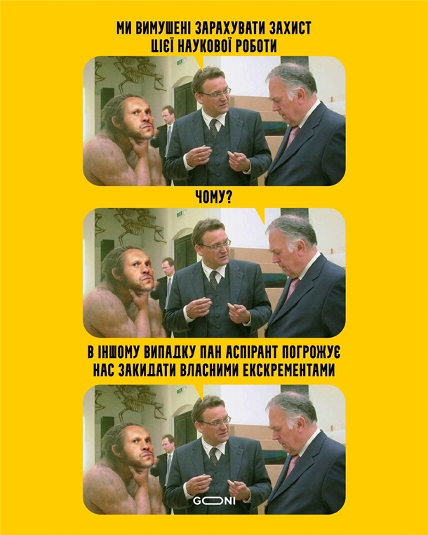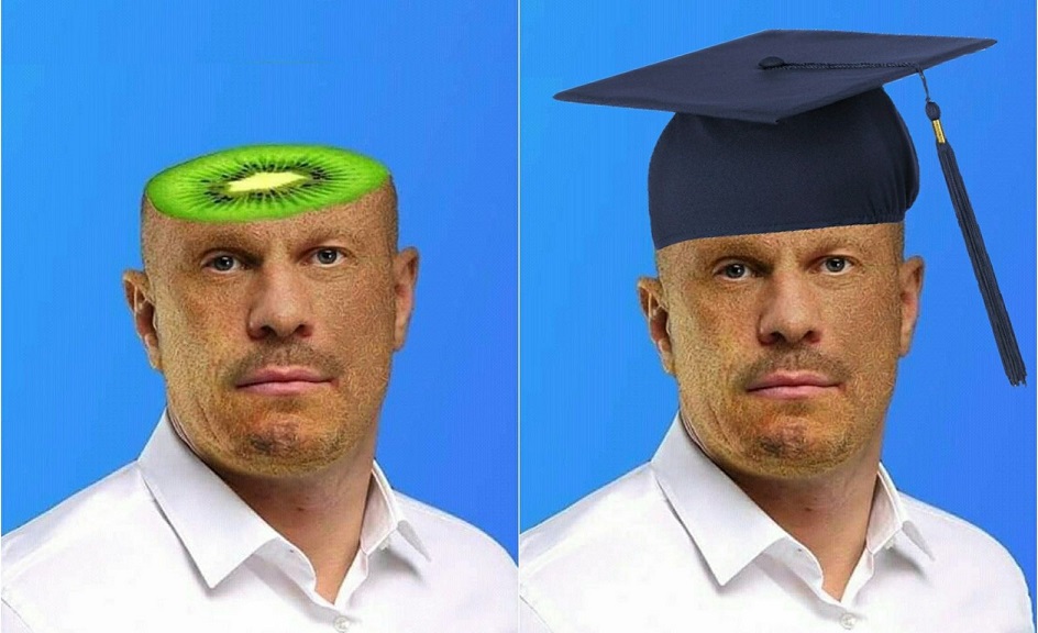 Авторы забавных картинок изображают известного своих косноязычием и грубостью нардепа Илью Киву, в частности, в образе известных персонажей фильмов - бандита Доцента из комедии "Джентельмены удачи" и Шарикова из "Собачьего сердца". Также на рисунках депутату предсказывают успешную защиту докторской, правда, не диссертации, а колбасы.