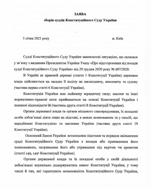 Во вторник, 5 января, судьи Конституционного Суда Украины провели собрание, на котором рассмотрели ситуацию в связи с изданием президентом Владимиром Зеленским указа об отстранении председателя КСУ Александра Тупицкого от должности.