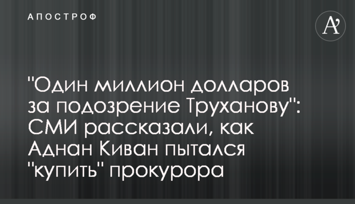 "Аднан Киван сказал, что я – лучший прокурор в мире, и он молился, чтоб такой прокурор был в Одессе. Но он мне предложил подписать подозрение мэру Труханову и предложил 1 миллион долларов. На что я сообщил ему, что буду об этой ситуации уведомлять свое руководство и уведомил", – сказал Жученко.