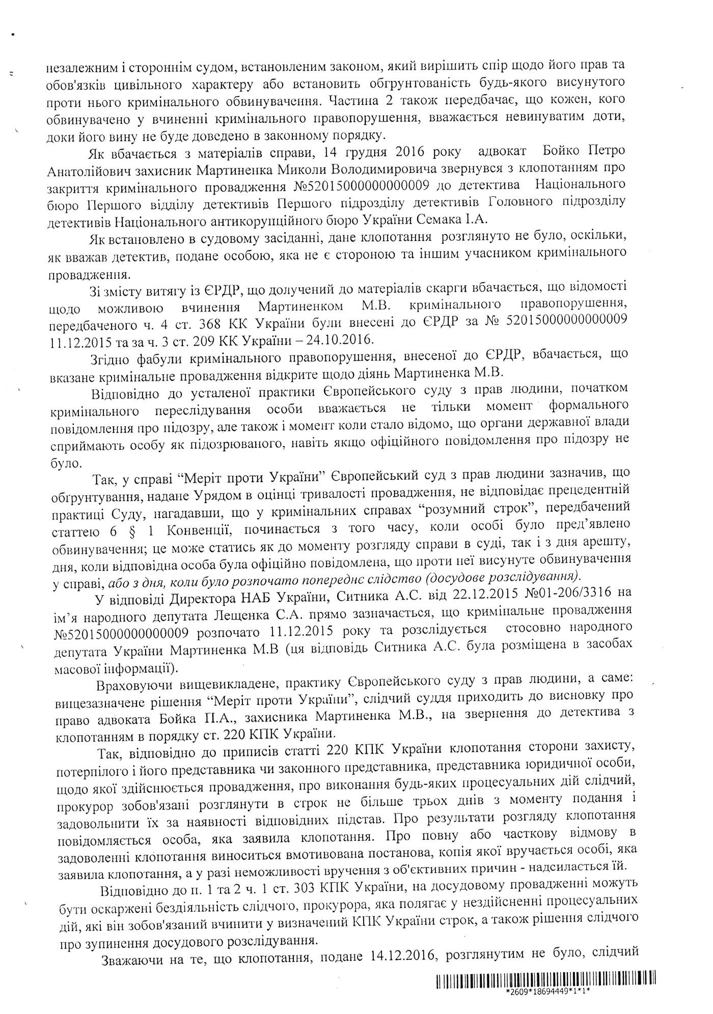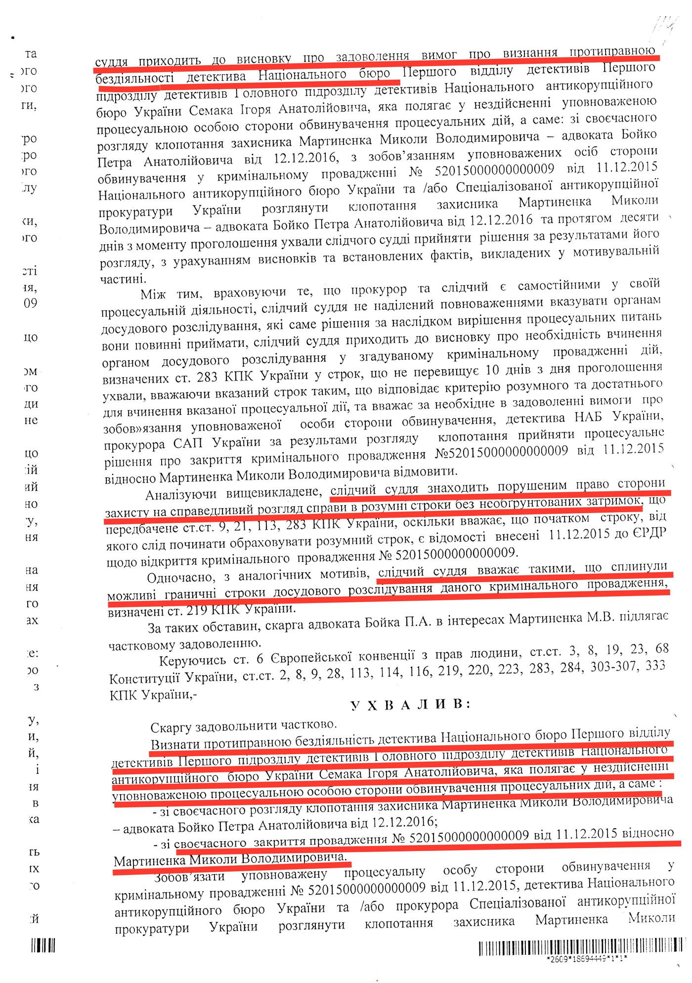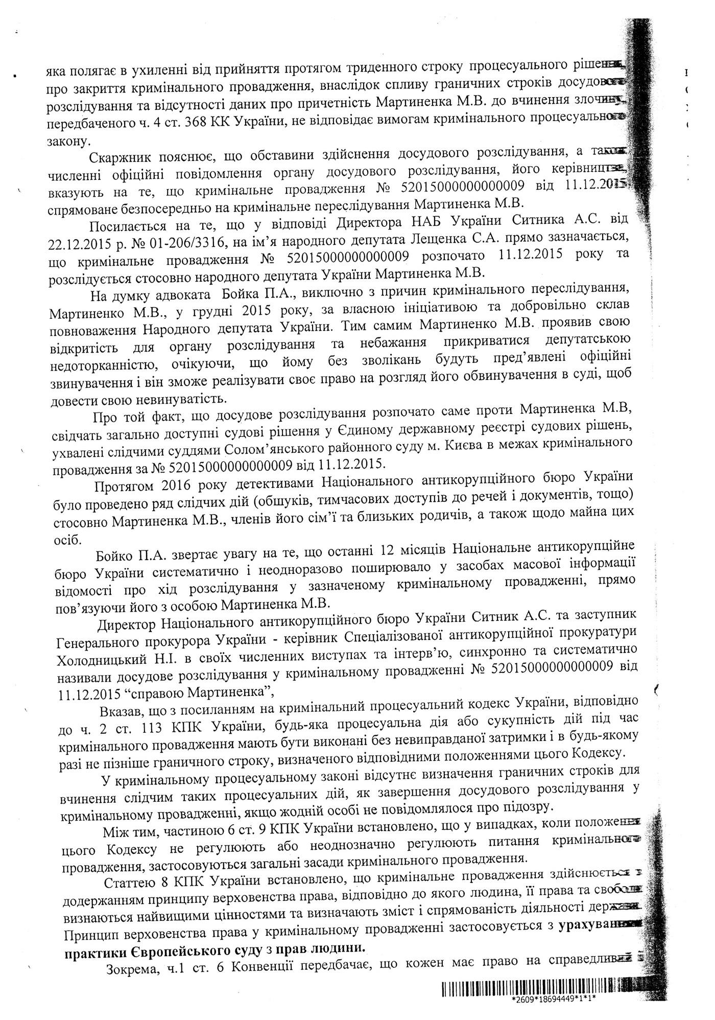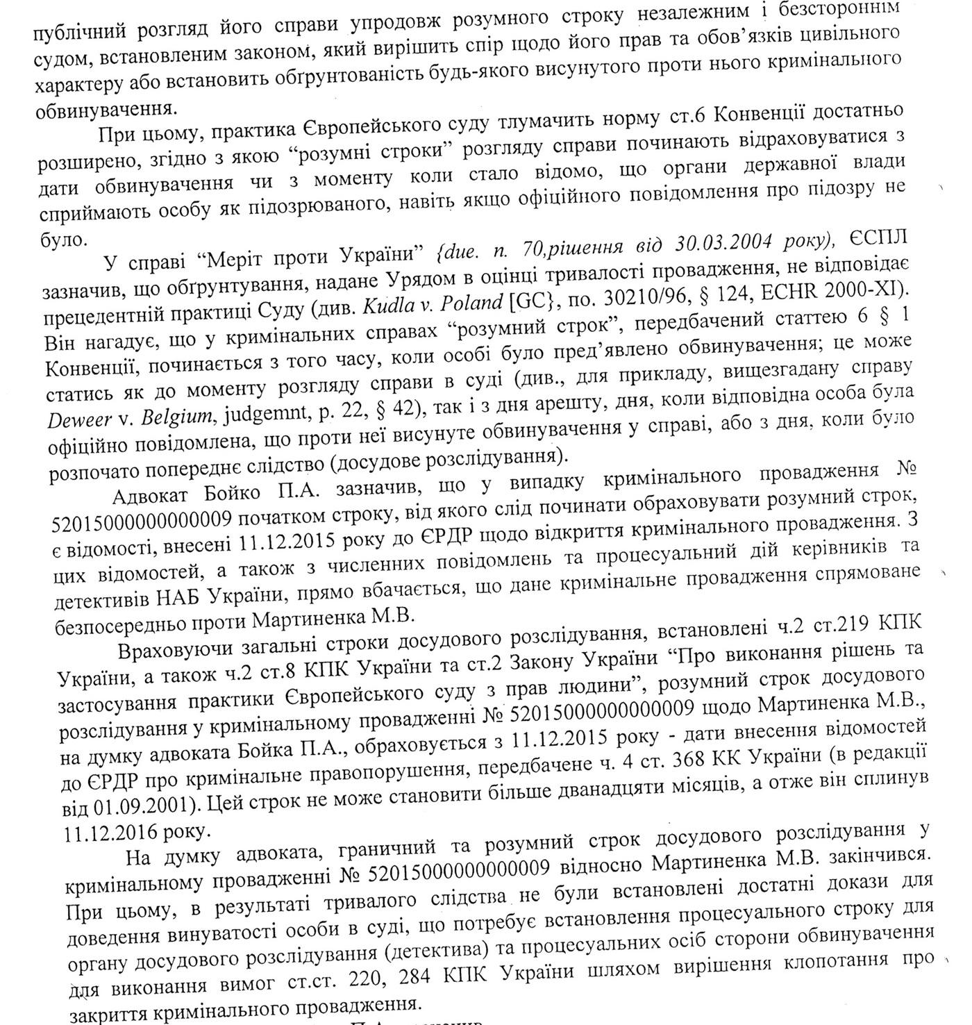 "Таким образом, суд подтвердил безосновательность обвинений в адрес Николая Мартыненко и ангажированность НАБУ, которое стремилось любой ценой громко пропиариться на так называемом "деле Мартыненко". Хотя бывший депутат формально не был даже подозреваемым, однако следствие больше года велось именно против него и не нашло никаких доказательств его виновности. Суд учел практику Европейского суда по правам человека и указал, в частности, на "нарушение права на справедливое рассмотрение дела в разумные сроки без необоснованных задержек" и окончания "возможных предельных сроков досудебного расследования данного уголовного производства", - заявили в пресс-службе экс-нардепа.