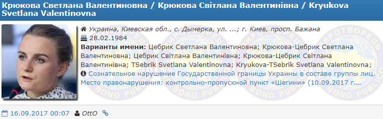 Как известно, Светлана Крюкова внесена в базу Миротворца за нарушение государственной границы Украины.