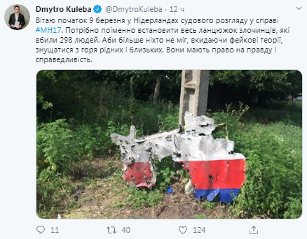 В свою очередь министр иностранных дел Дмитрий Кулеба отметил необходимость поименного установления всей цепочки преступников, убивших 298 человек - жертв крушения авиалайнера.