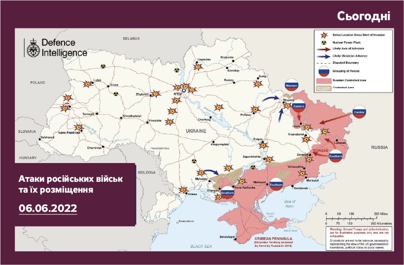 Обновленную карту боевых действий 6 июня опубликовало министерство обороны Великобритании.