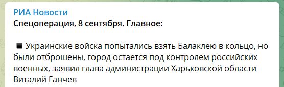 23:25 На сон грядущий пропагандистские СМИ России насмешили сообщением от харьковского гауляйтера Виталия Ганчева о том, что "украинские войска попытались взять Балаклею в кольцо, но были отброшены, город остается под контролем российских военных".