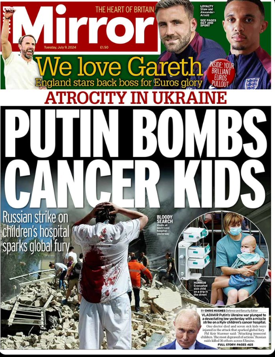 Соответствующим образом в Министерстве иностранных дел Украины прокомментировали обложку британского издания Mirror с заголовком "Путин бомбит онкобольных детей".