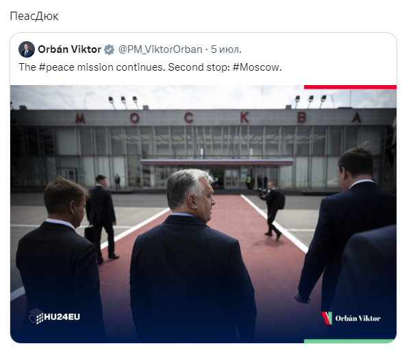 Напомним, Министерство иностранных дел Украины выступило с официальным заявлением о визите премьер-министра Венгрии Виктора Орбана в Москву, 5 июля 2024 года. В комментарии ведомства подчеркивается, что решение о поездке было принято венгерской стороной без предварительного согласования или координации с Украиной. МИД Украины также напомнил, что единственным реалистичным путем восстановления справедливого мира остается Формула мира.