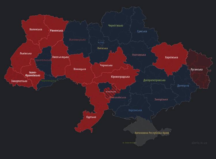 10:25 В десятке областей Украины объявлена воздушная тревога. Все в укрытия.