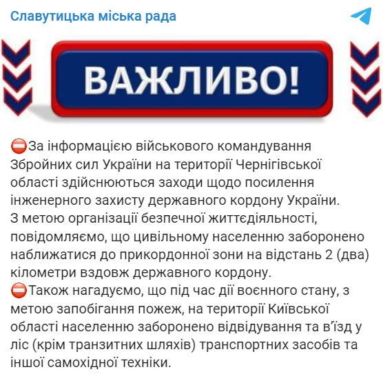 18:35 В Черниговской области гражданскому населению запретили приближаться к границе с Россией на расстояниие двух километров, потому что РФ систематически обстреливает приграничные территории.