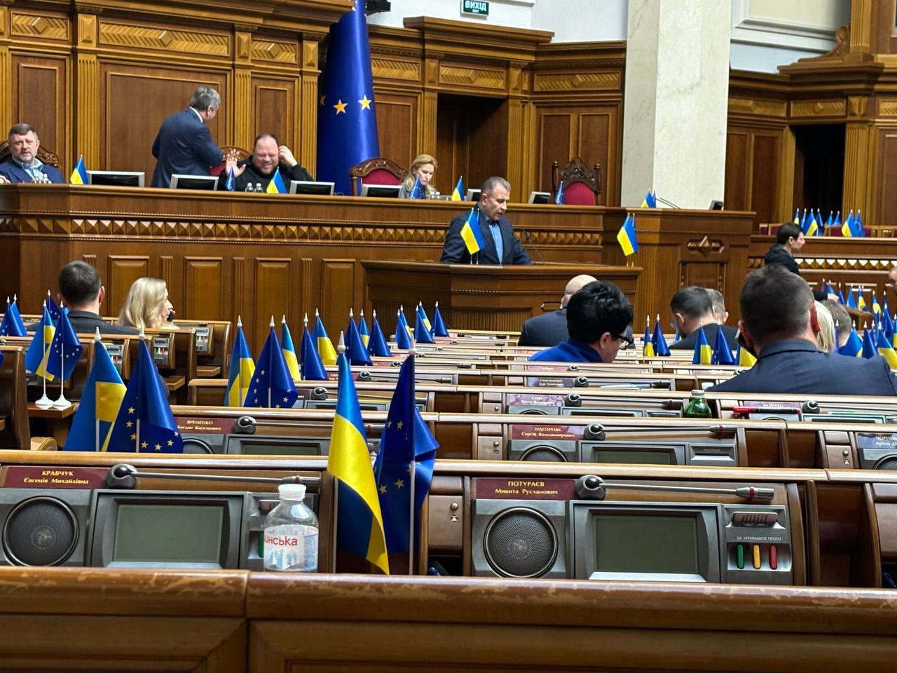 "Первый парламентский день 2025 года. В зале что-то негусто... Зато в зале - Николай Тищенко, который официально находится на домашнем аресте".