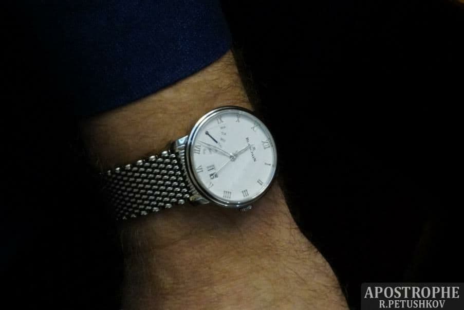 На руках политика красовались часы Blancpain Villeret Grand Date Retrograde Day за 12,8 тысячи долларов. За эту сумму в нашей стране можно купить неплохое поддержанное или даже новое авто.