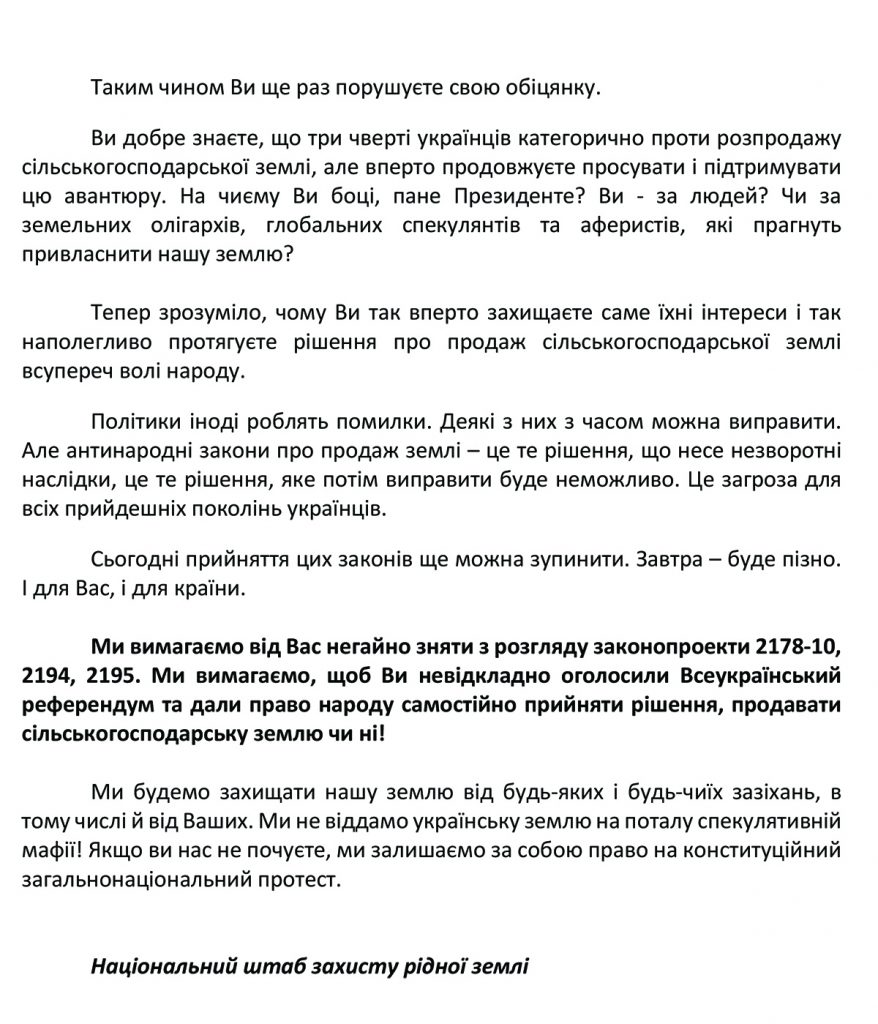 Более 40 политических и общественных организаций, которые выступают против распродажи земли, объединились в Национальный штаб защиты родной земли. В его состав вошли представители политических партий и движений, научных и профессиональных союзов, волонтерских и ветеранских организаций.