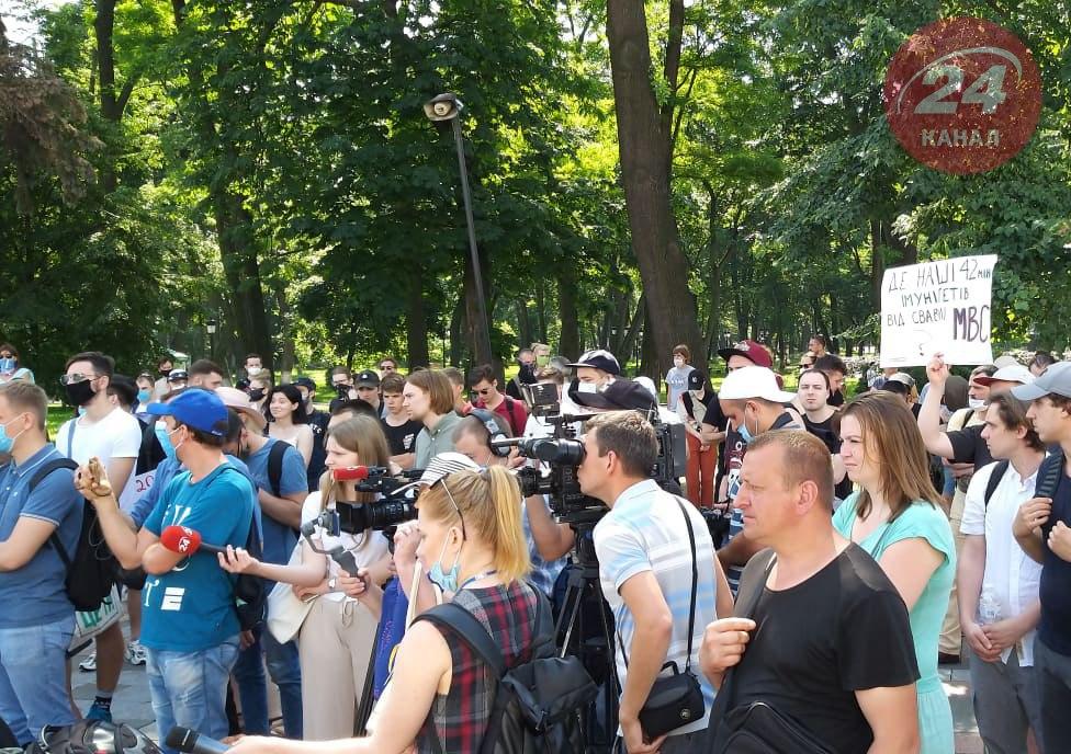 Митингующие пришли с призывами: "Иммунитет - не для черта", "Защитите от произвола "стражей порядка", "Кагарлык - дело Авакова", "Павел Шеремет - дело Авакова". Активисты требовали отставки главы МВД.