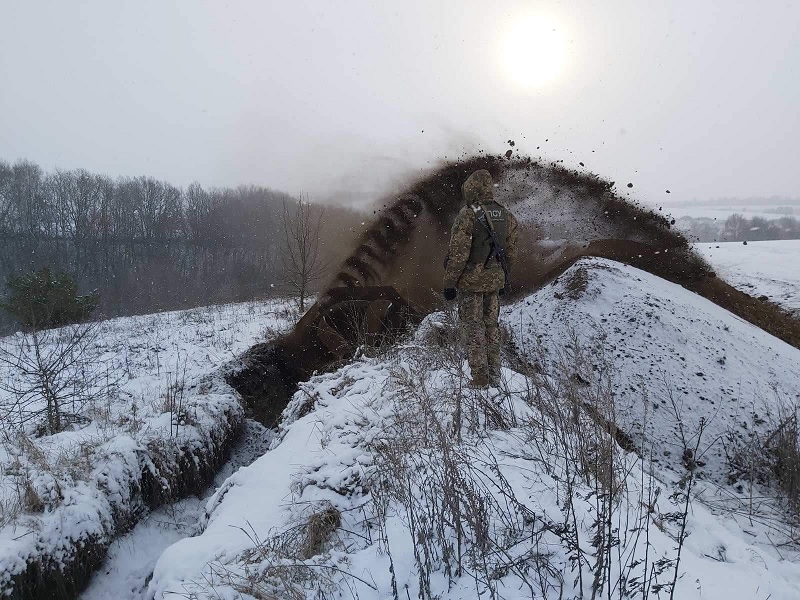Работы по укреплению приграничных территорий местах их соприкосновения с РФ и Беларусью продолжаются даже несмотря на трудности, связанные с зимой.