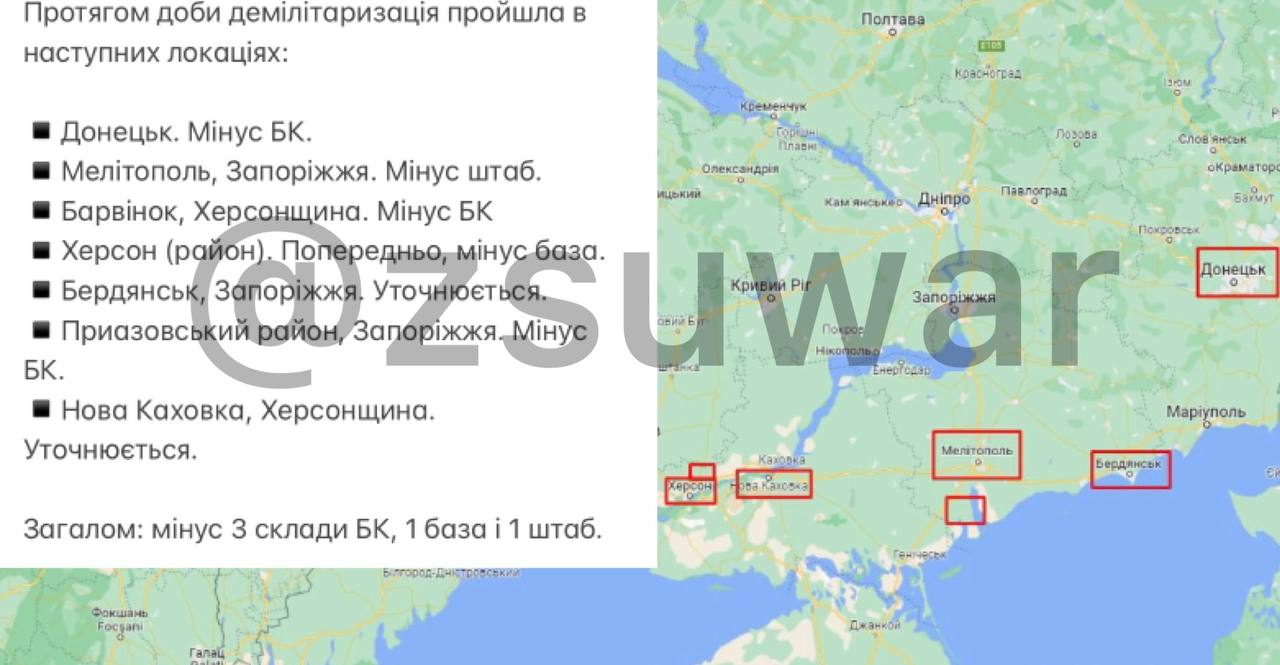 23:10 В течение суток были "демилитаризованы" три склада боеприпасов, одна база и один штаб оккупантов.
