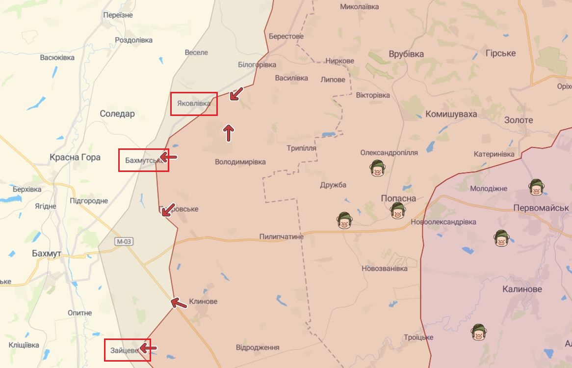 19:10 На Бахмутском направлении враг штурмовыми действиями пытался прорвать оборону наших войск и продвинуться в направлении Яковлевки, Бахмутского, Зайцева, Вершины и Дачи. Украинские воины нанесли оккупантам потери и принудили к бегству, сообщает Генштаб ВСУ.