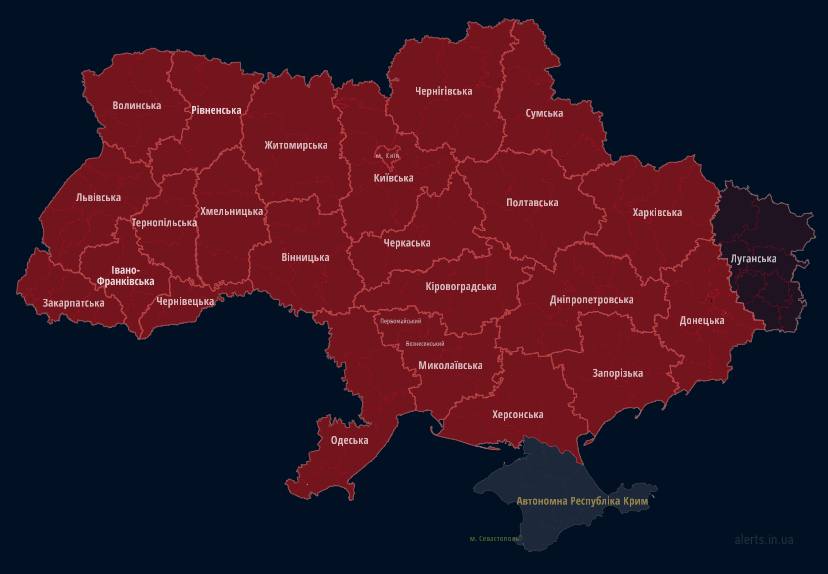 19:21 Карта воздушных тревог по состоянию на данный момент.