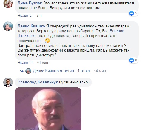 Как писал "Апостроф", депутат от партии "Слуга народа" Евгений Шевченко поздравил Александра Лукашенко с победой на выборах президента в Беларуси.