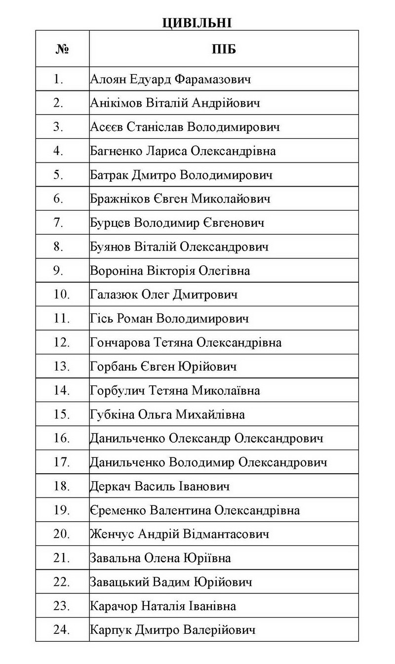 Появился полный список украинцев, освобожденных в рамках масштабного обмена, который прошел в воскресенье, 29 декабря, на КПВВ "Майорское" под Горловкой, общее число которых составило 76 человек.