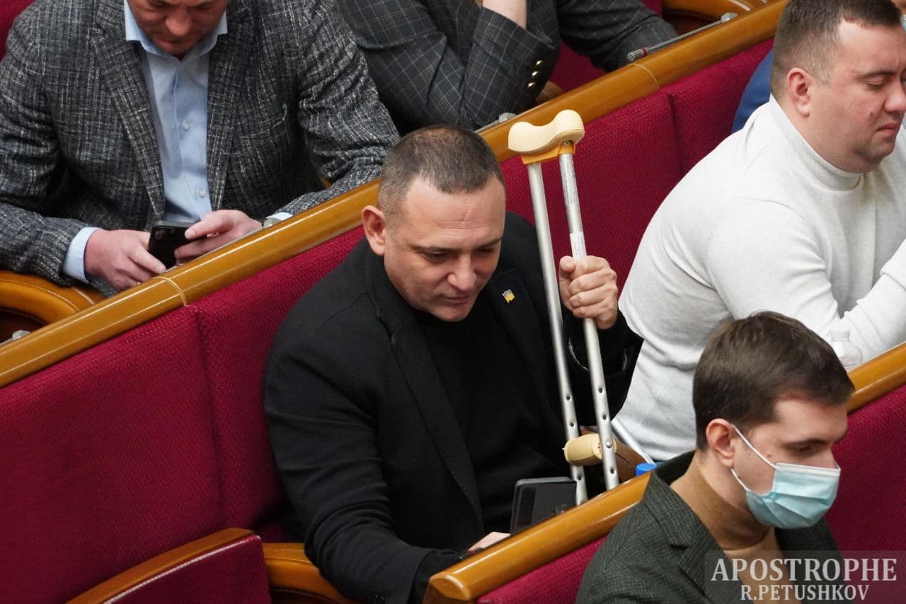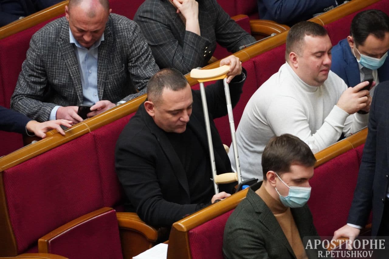 Скандальный народный депутат Украины от фракции "Слуга народа" Максим Бужанский, который ранее попал в базу сайта "Миротворец" из-за языкового закона, пришел в сессионный зал Верховной Рады с костылем.