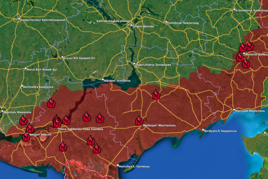 07:20 Карта 19 ударов HIMARS и М270 за последние двое суток. Мосты через Днепр (x2), Новая Каховка (x2), Мелитополь, Большая Благовещенка, Токмак, Нижние Серогозы, Любимовка, Чкалово, окрестности Донецка (x4), Чаплынка и еще четыре села в Херсонской области.