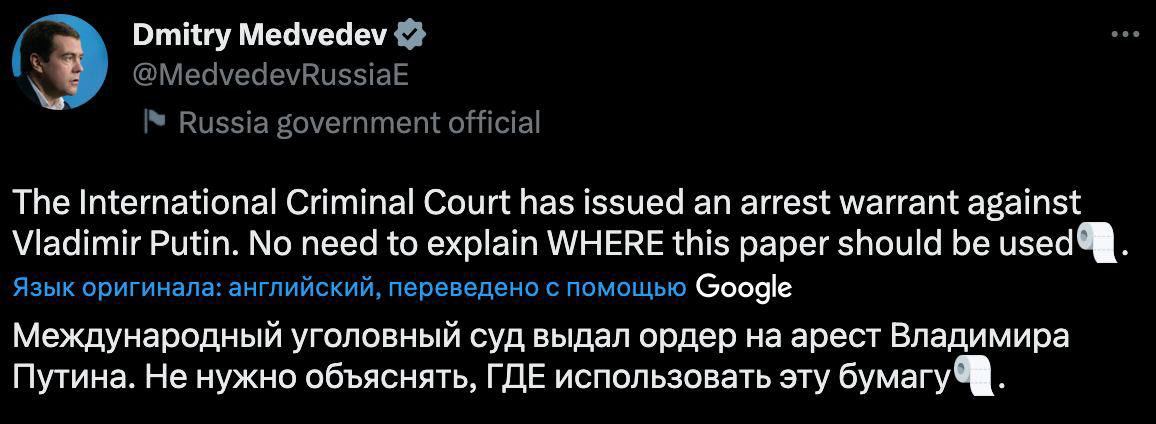 Замглавы Совбеза РФ Дмитрий Медведев в свойственной для себя хамовитой манере высказался, что, по его мнению, нужно сделать с документом.