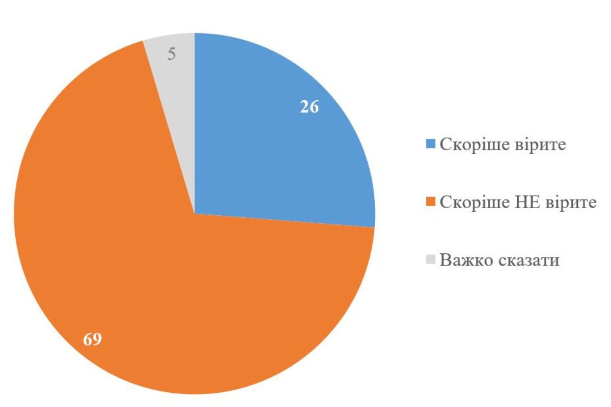 Результаты опроса, проведенного Киевским международным институтом социологии в конце 2025 года, свидетельствуют, что подавляющее большинство граждан — 69% — не верят в достижение устойчивого мира из-за нынешних переговоров. Противоположного мнения придерживаются 26% респондентов, а еще 5% не смогли определиться.