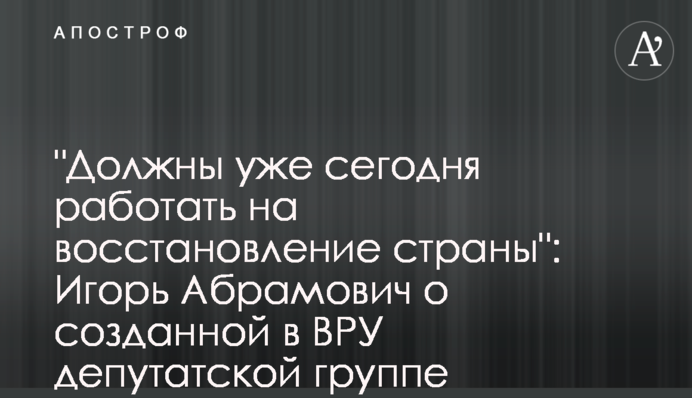 Такое мнение высказал народный депутат Украины, заместитель главы Комитета ВР по финансам, налоговой и таможенной политике Игорь Абрамович, комментируя создание в Совете депутатской группы "Восстановление Украины".