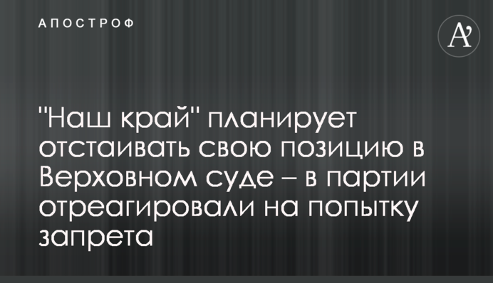 "19 июня суд первой инстанции вынес решение о запрете партии "Наш край". Со дня основания и по сей день партия "Наш край" была и остается проукраинской, патриотической политической силой. Обвинения в адрес партии с требованием ее запрета из-за якобы пророссийской и антигосударственной позиции безосновательные и незаконные. И по духу, и по букве закона "Наш край" видит в действиях власти попытку зачистки электорального поля Украины. Несмотря на попытки запретить "Наш край", партия будет отстаивать свою правоту в Верховном суде".