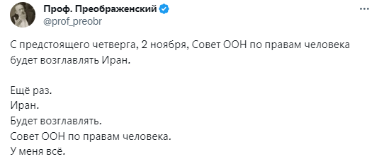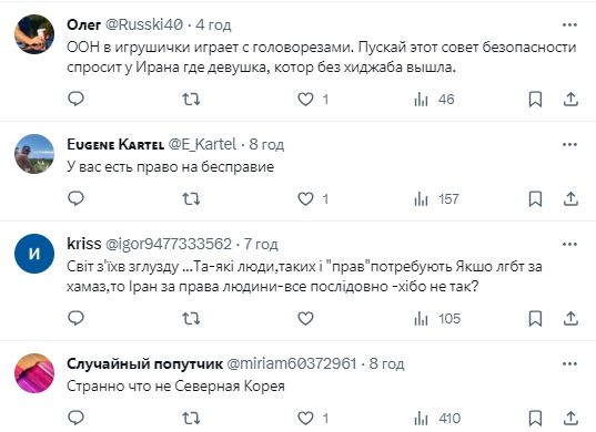 "Мы призываем г-на Борреля принять меры. Пришло время всем демократическим странам в ООН прекратить легитимизировать кровавые режимы, нарушающие основополагающие принципы всемирной организации, и вместо этого начать привлекать виновных к ответственности", – заявил исполнительный директор UN Watch Гилель Нойер.