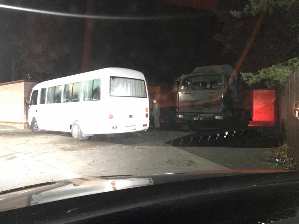 Появились новые фотографии скопления сотрудников силовых ведомств и техники возле резиденции президента Украины Петра Порошенко в поселке Козин Киевской области.