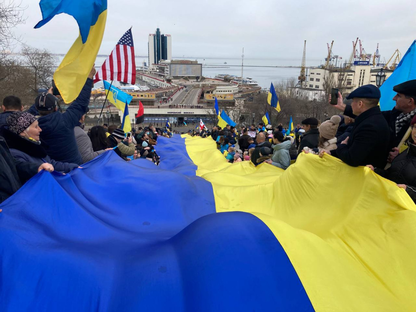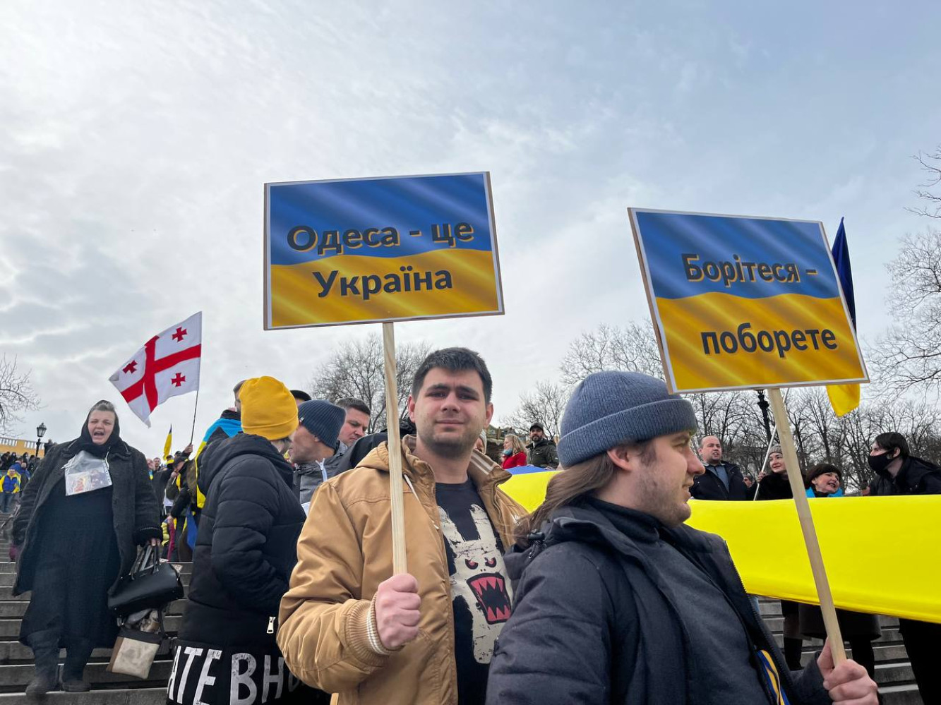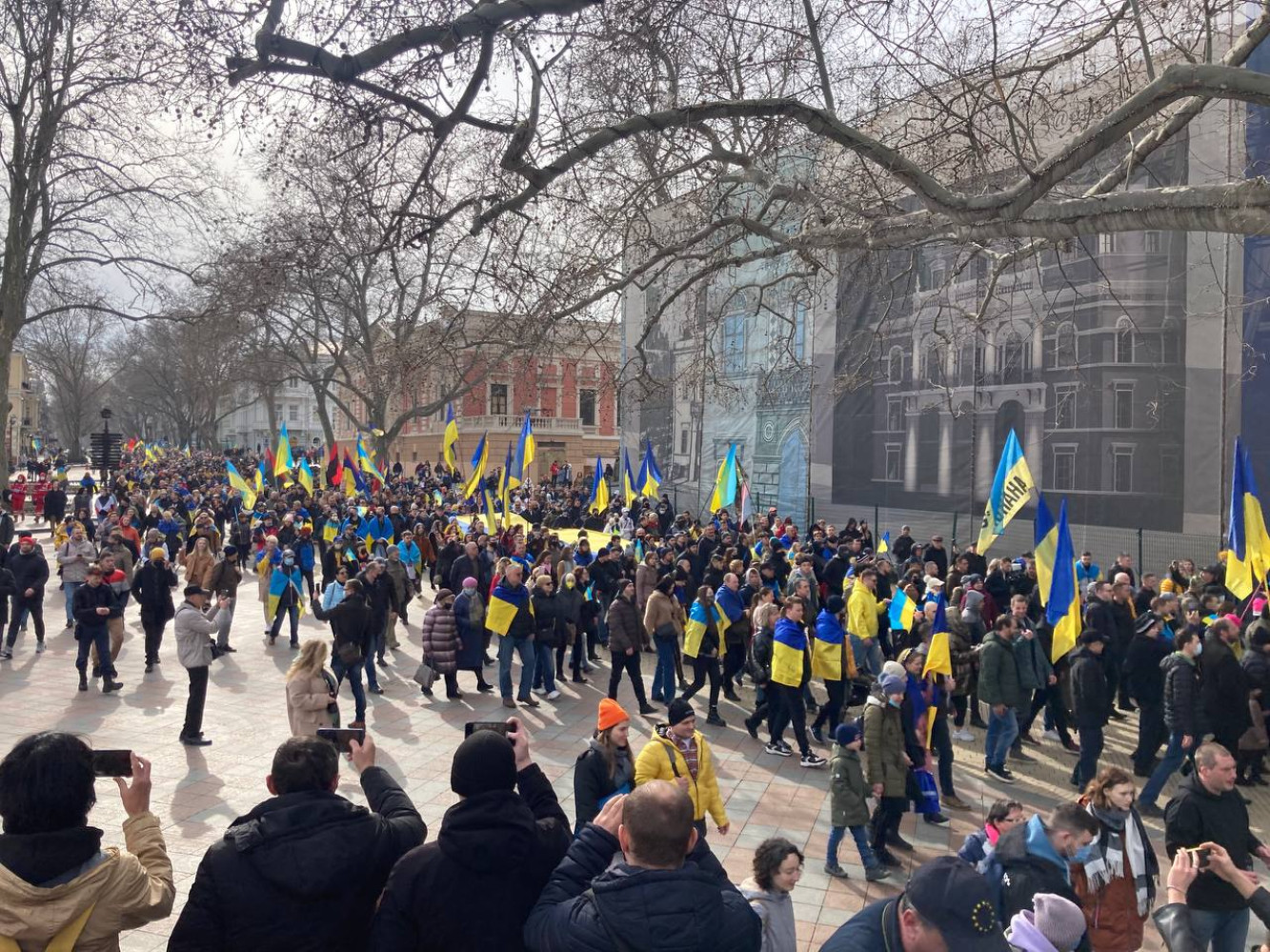 Так, в воскресенье, 20 февраля в 12 часов дня около трех тысяч жителей Одессы, среди которых много детей и молодежи, вышли на Соборную площадь, откуда через Дерибасовскую двинулись к памятнику Дюку де Ришелье.
