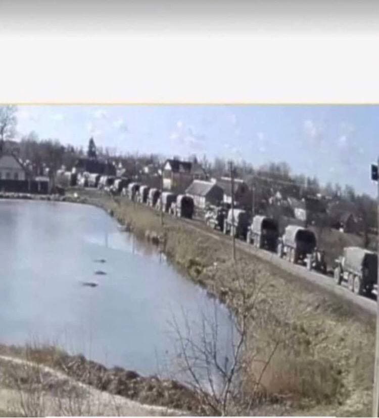 В сети распространили фото, на котором колонна военной техники оккупантов в районе села Здвижовка Бородянского района, которые просто стоят примерно 6 часов, не двигаясь в сторону Киева. Это связывают с тем, что президент РФ Владимир Путин отдал приказ о приостановки движения своих солдат перед ожидавшимися переговорами с украинской стороной.